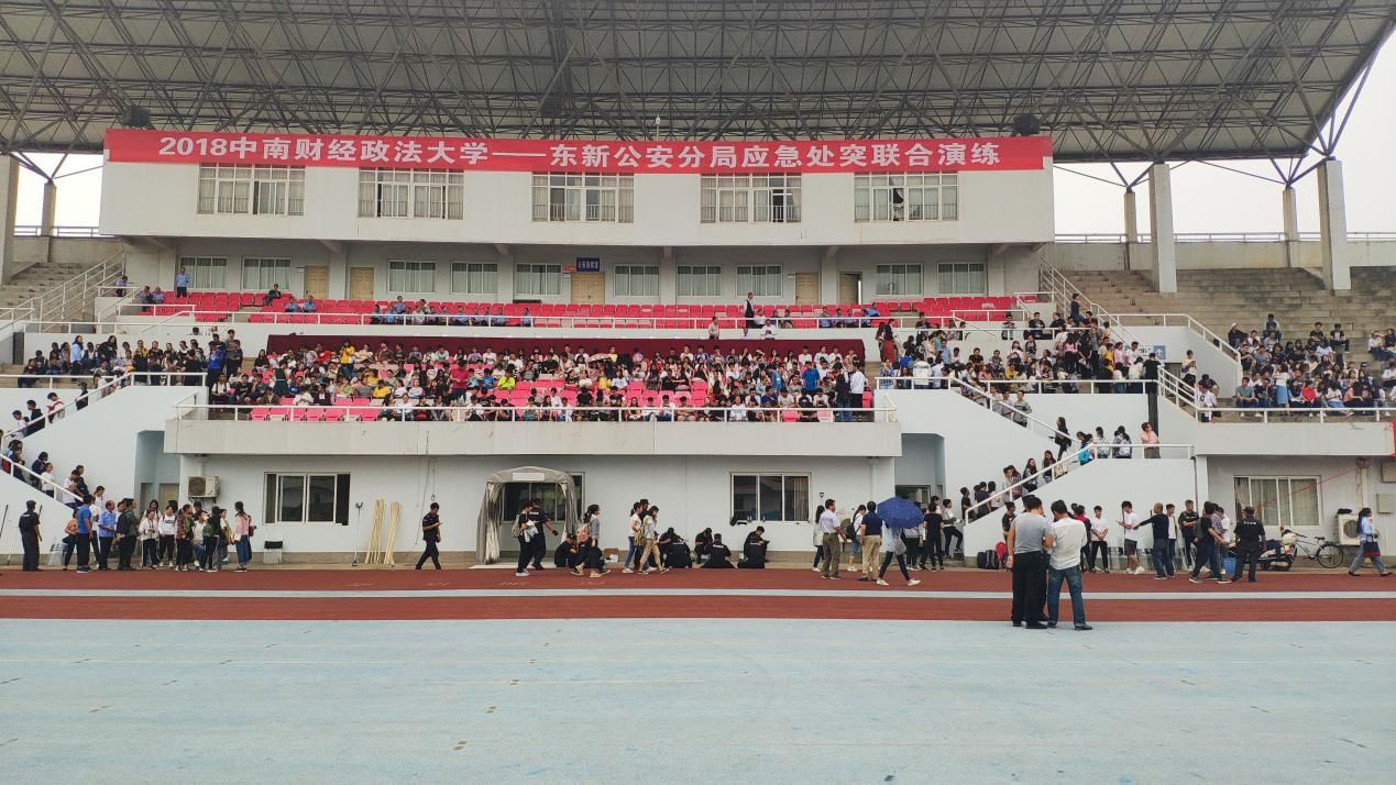 为进一步增强师生反恐防暴意识,切实提升学校应急处置队伍快速反应能力, 9 月 27 日下午 3:00 在南湖校区新体育场,学校联合东湖高新分局、东新消防大队、铁箕山派出所举行“2018 年中南财经政法大学—东新公安反恐防暴、应急处突联合演练”,校党委副书记、纪委书记万清祥教授、东湖新技术开发区公安分局政委吴学军、校保卫部长张学平、铁箕山派出所所长钟建林、东新公安分局国保大队教导员李凡、东湖新技术开发区消防中队队长李长洋、武汉洪保保安服务有限公司董事长王虹等出席了本次演练活动。