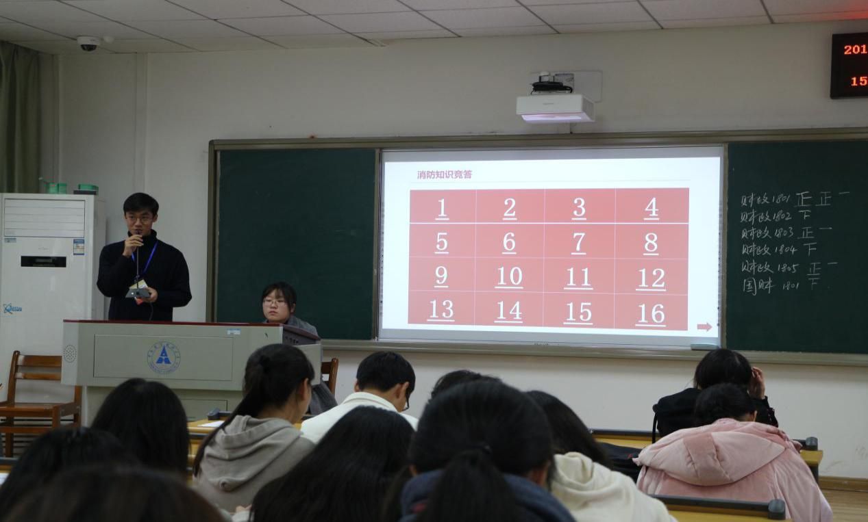 15日“119”消防宣传讲座在中南财经政法大学文润楼212教室举行。普安消防金新涛老师进行本次讲座,财税18级的学生以及志协工作人员积极参加了此次讲座。