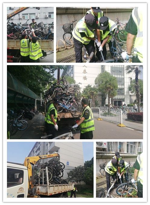 校内废弃自行车一直是校园环境管理中的难题,每逢毕业季,校园就会增加一批被遗忘的自行车,破坏了原本干净、有序的校园环境,给师生的出行、安全带来困扰和不便,为此保卫部每年都会组织人员定期清理。如今又至毕业季,废旧自行车不断增多,清理工作迫在眉睫。保卫部工作人员按照预定方案,对环湖公寓、临湖公寓、滨湖公寓、文泰楼等10多处集中堆放点的绿丝带自行车进行清理。经过工作人员的持续奋战,安全有序地完成了3000余辆废弃自行车清理工作,解决了废弃自行车占用停车位影响师生出行问题,美化了南湖校区校园环境。