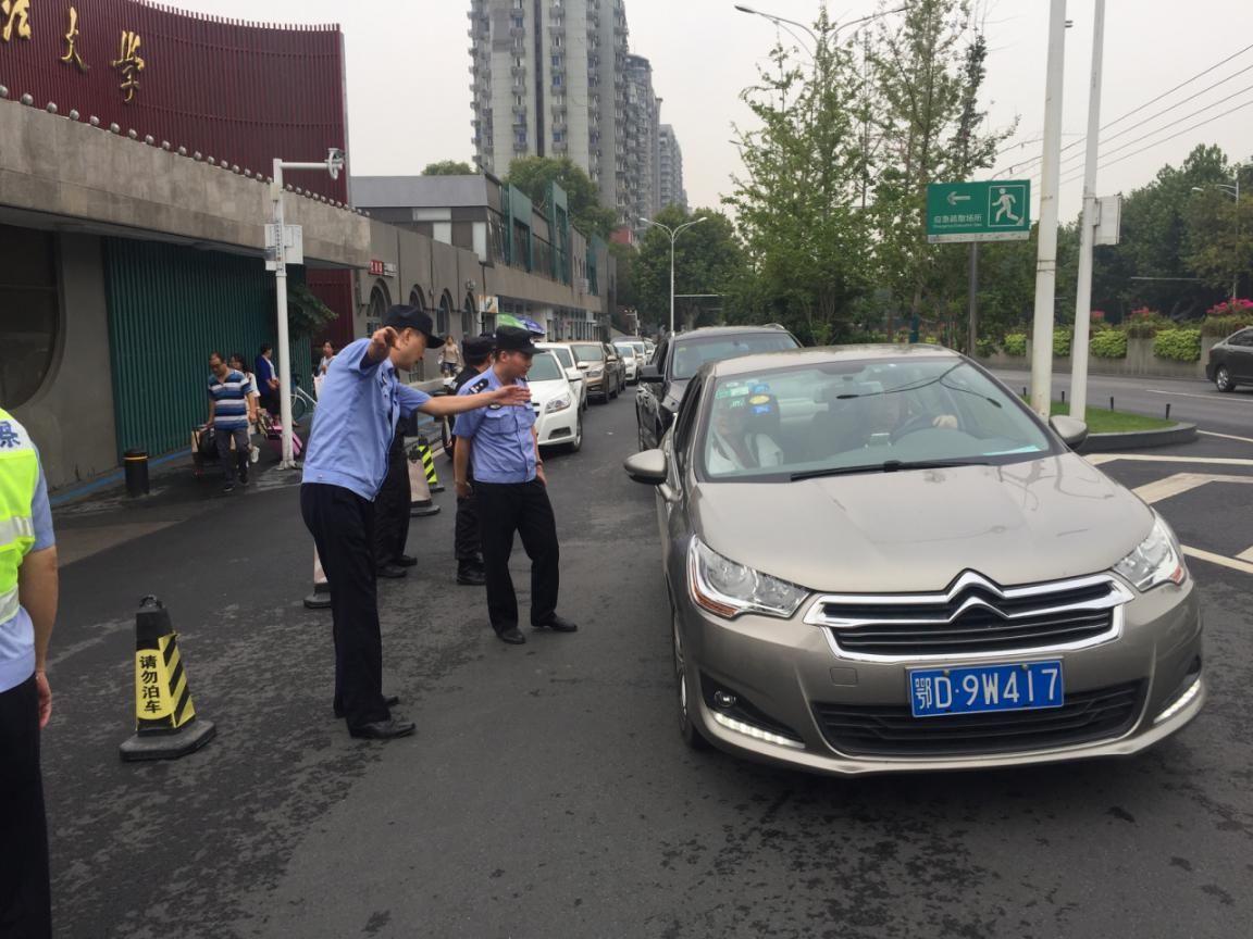 二是维护交通秩序。为维护良好的校园秩序,迎新期间对进出两校区车辆实行交通管制措施,南湖校门禁系统全部开放,所有车辆免费通行,首义校区由于停车空间有限,限制车辆通行,同时联系辖区派出所、交通大队,联合加强对校门交通的管控和疏导。开学前,保卫部组织专门力量对校内交通安全设施进行全面检查,在校内多平台发布交通管制公告,并在交通管制路段、路口增设禁停和警示标志;在校门口设立警示牌,提醒驾驶人绕道、减速行驶,注意安全。