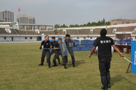 我校党委常委、副校长申祖武,东新公安分局副局长李闽,东新公安分局反恐大队、特警大队、治安大队主要负责人和铁箕山派出所、东新消防救援大队、武汉洪保保安公司等单位负责人,以及华中科技大学、华中师范大学等六所高校保卫处(部)负责人,我校学工部、后勤保障部、信息与安全工程学院等相关单位领导及2000余名师生到场观摩。