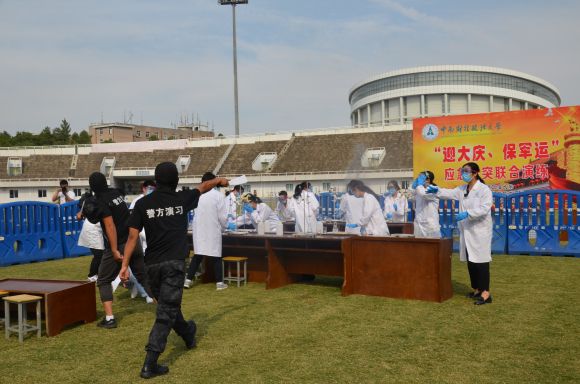 9月26日下午,我校联合东新公安分局、东新消防救援大队于南湖校区新体育场举行了“‘迎大庆·保军运’应急处突联合演练”活动。本次活动旨在强化警校联动打击犯罪活动协同作战能力,展示学校联合公安机关快速反应处置突发事件的工作能力,增强师生暴恐现场报警、避险意识。