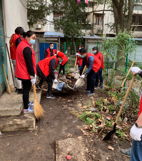 2021年3月23日上午,南湖社区联合后勤保障部、保卫部、党委联系工作队队员及下沉党员,清理整治北苑家属区11栋旁配电房周边环境卫生死角。