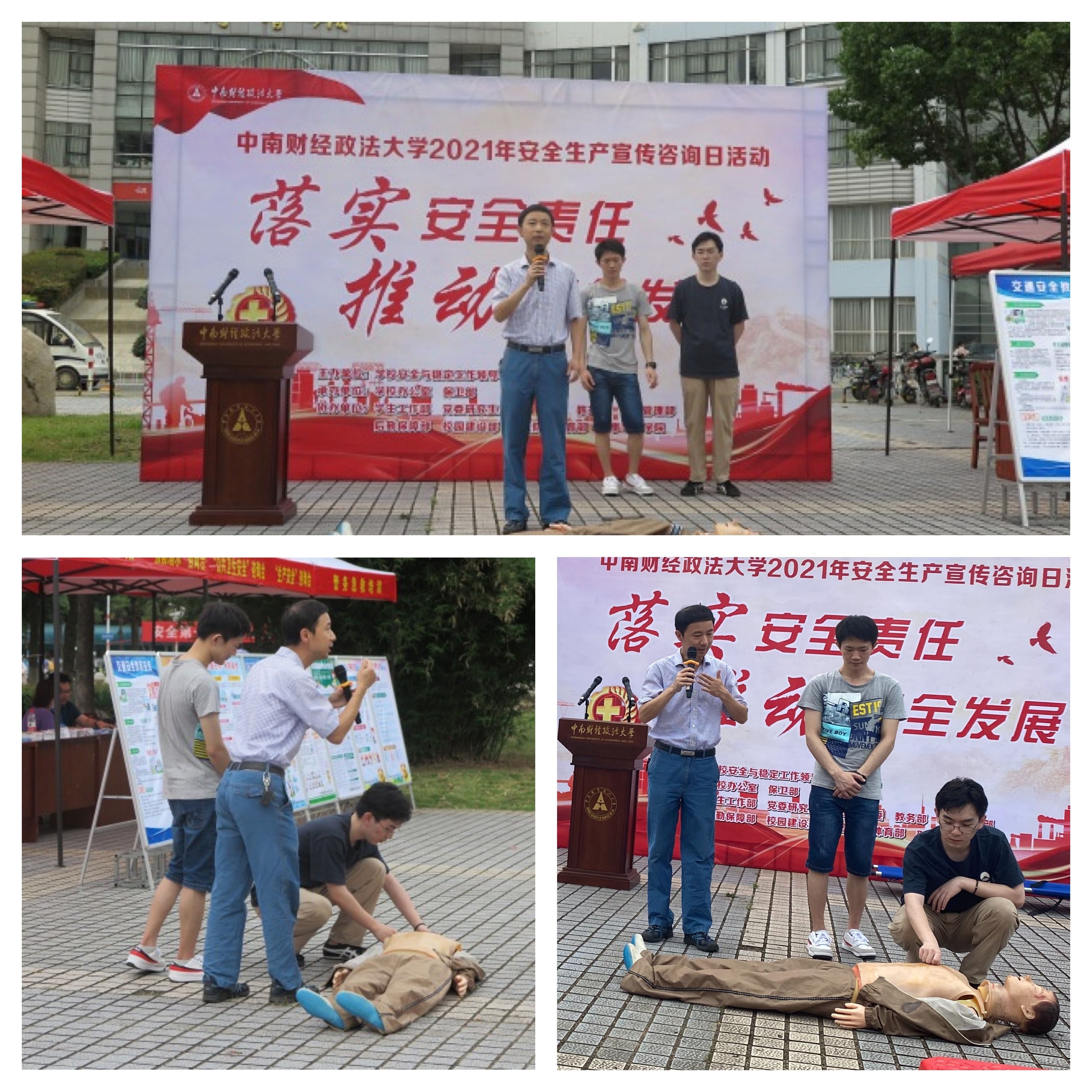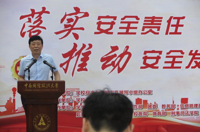 6月16日,学校办公室、保卫部会同学生工作部、党委研究生工作部、团委、教务部、信息管理部、后勤保障部、校园建设部、校医院、体育部、刑事司法学院等单位,在南湖校区五羊广场举办主题为“落实安全责任,推动安全发展”的安全生产宣传咨询日活动。校党委常委、副校长申祖武出席了本次活动。