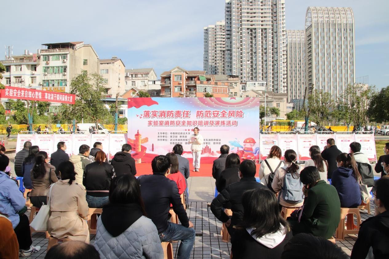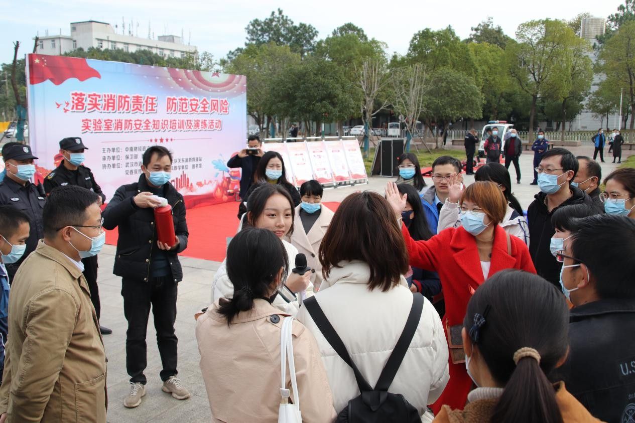 为进一步增强师生消防安全意识,提升应急救援能力,深入推进“119消防宣传月”活动,11月9日上午,学校联合武汉市消防救援支队开展了以“落实消防责任,防范安全风险”为主题的实验室消防安全知识培训及演练活动。保卫部、教务部、党委宣传部、团委等部门责任人,各学院实验室负责人、实验员及学生代表参加了此次活动。