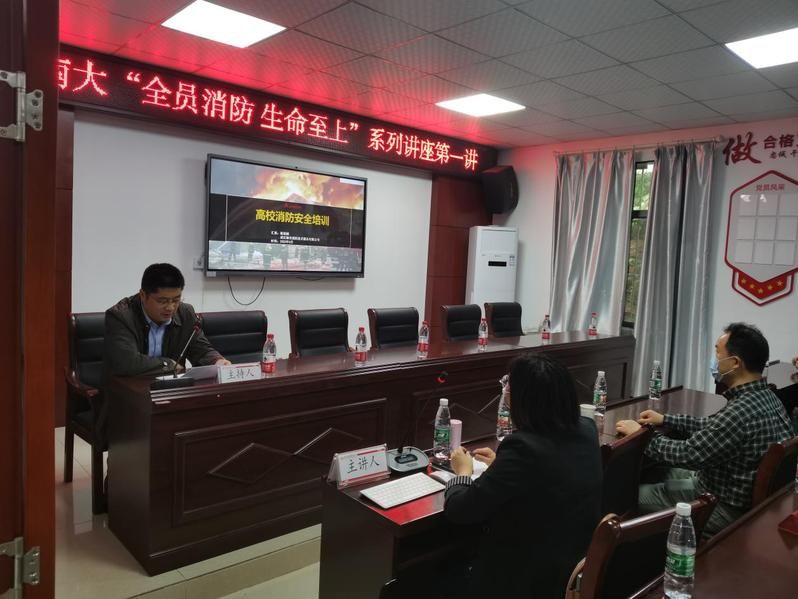 4月28日下午,按照学校年度消防宣传工作计划,保卫部联合南湖社区以“全员消防 生命至上”为主题开展消防安全培训讲座。作为中南大“全员消防 生命至上”系列讲座第一讲,本次讲座旨在进一步筑牢学校消防安全防护网,营造“人人重防火,时时讲安全”的校园氛围。本次讲座由保卫部副部长李远征主持,邀请武汉大学防灾减灾工程及防护工程博士、湖北省建设工程消防设计审查验收专家库专家、武汉珈安消防技术服务有限公司总工程师陈娟娟为主讲人。全体保卫干部、校卫队、微型消防站全体工作人员、社区工作者、学生代表等参加讲座。