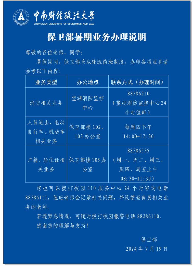 保卫部暑期业务办理说明